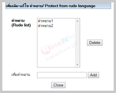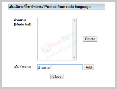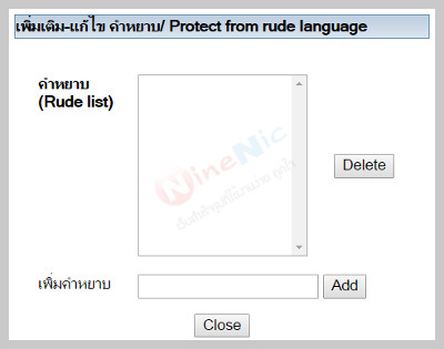1. กรอกคำหยาบลงในช่อง เพิ่มคำหยาบ แล้วกดปุ่ม Add