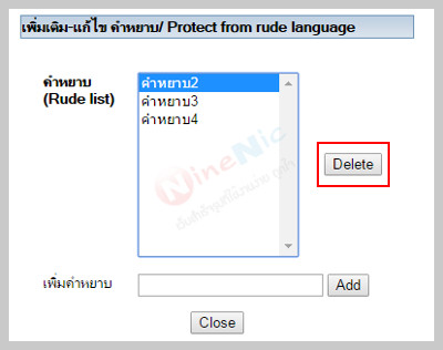 3. คำหยาบที่เพิ่มไปแล้วสามารถลบออกได้ โดยเลือกคำหยาบที่ต้องการลบ แล้วกดปุ่ม Delete
