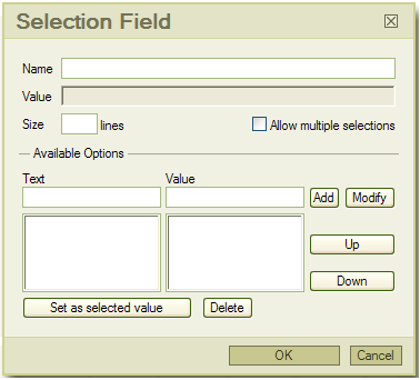 คลิกไอคอนเมนู Selection Field  จะปรากฏหน้าจอดังรูป   Selection Field  properties